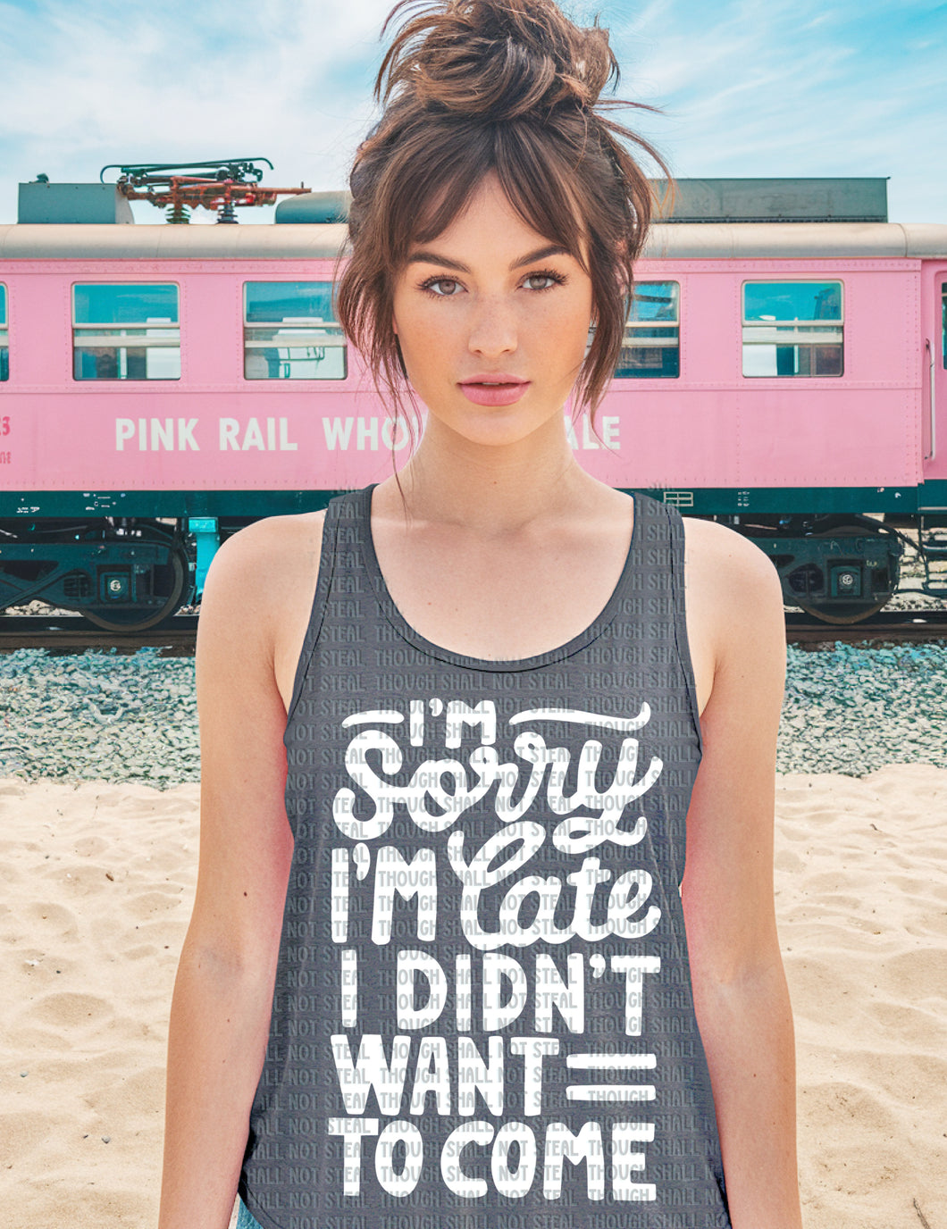 L-262 B White - I_m Sorry I_m Late DTF TRANSFER ONLY